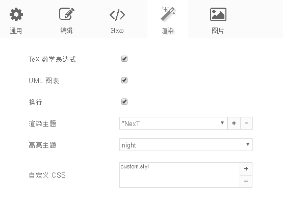 其实这部分没啥好说的,都勾选上也没关系,不过要注意一点,渲染主题的时候,如果你不是next,那么自己更换,点旁边+号选择你的主题文件夹即可,会自动识别的。
