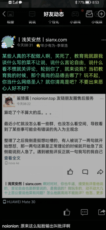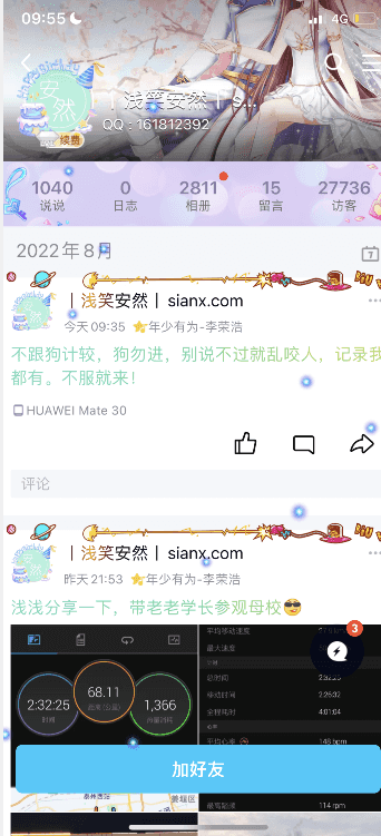 估计是看我连好友都删了,而且之后就不搭理他了,浅笑安然 | sianx.com 觉得我会继续像以往那样冷处理,所以怼我的那条说说还挂着,估计是等我道歉呢。也好。那就让他求仁得仁。请转高情商版块。