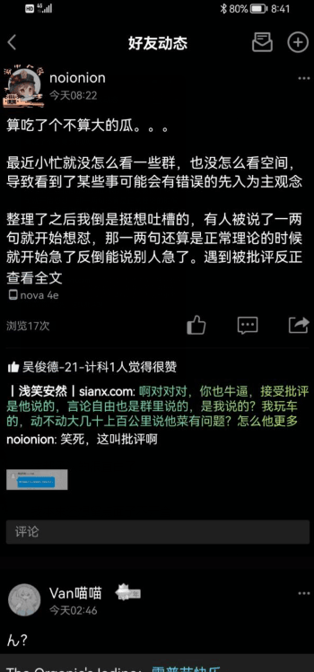 不巧的是貌似他突然就没了底气,把这条不服就来以及炮轰贰猹的说说删除了。