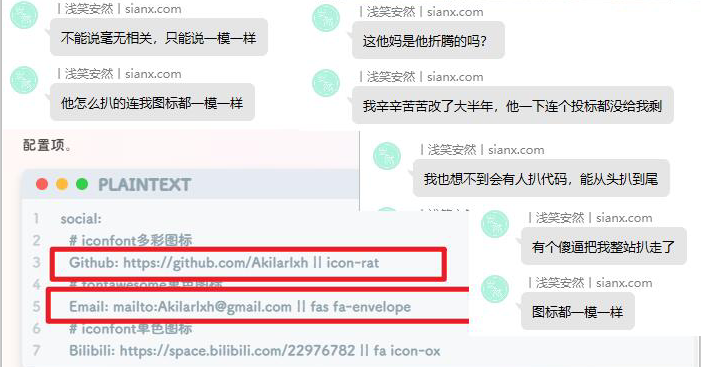 然后呢,我比对了一下他所说的这位“抄袭者”的网站和他发在博客的教程内容,发现人家不过是忠实的按照他给出的教程进行了复现而已。当时我想,既然他大摇大摆的把教程贴出来,总归是该给别人看的吧,那别人照着复现也无可厚非啊,但现在看来就很难说了,毕竟浅笑安然自由福音里反复强调这是写给他自己看的嘛。