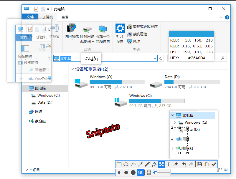 还集成了马赛克,取色器,简易P图遮盖的功能。