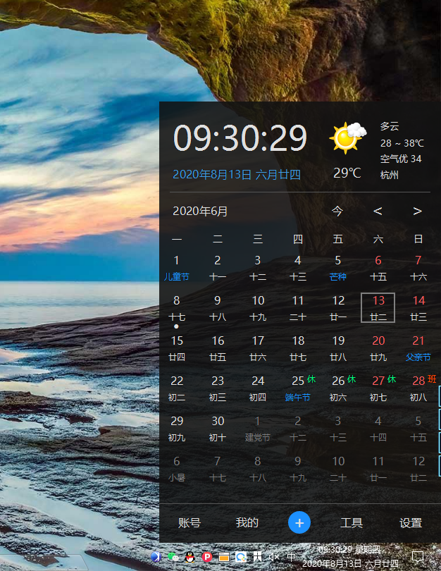 日历界面色彩更加丰富,且支持自定义,软件占用资源极低,可以放心使用。